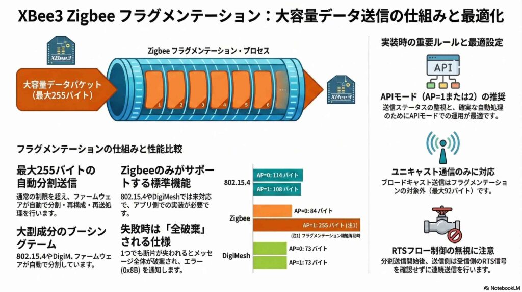 以下にZigbeeファームウェアにおけるフラグメンテーション機能の主要な項目について説明します。